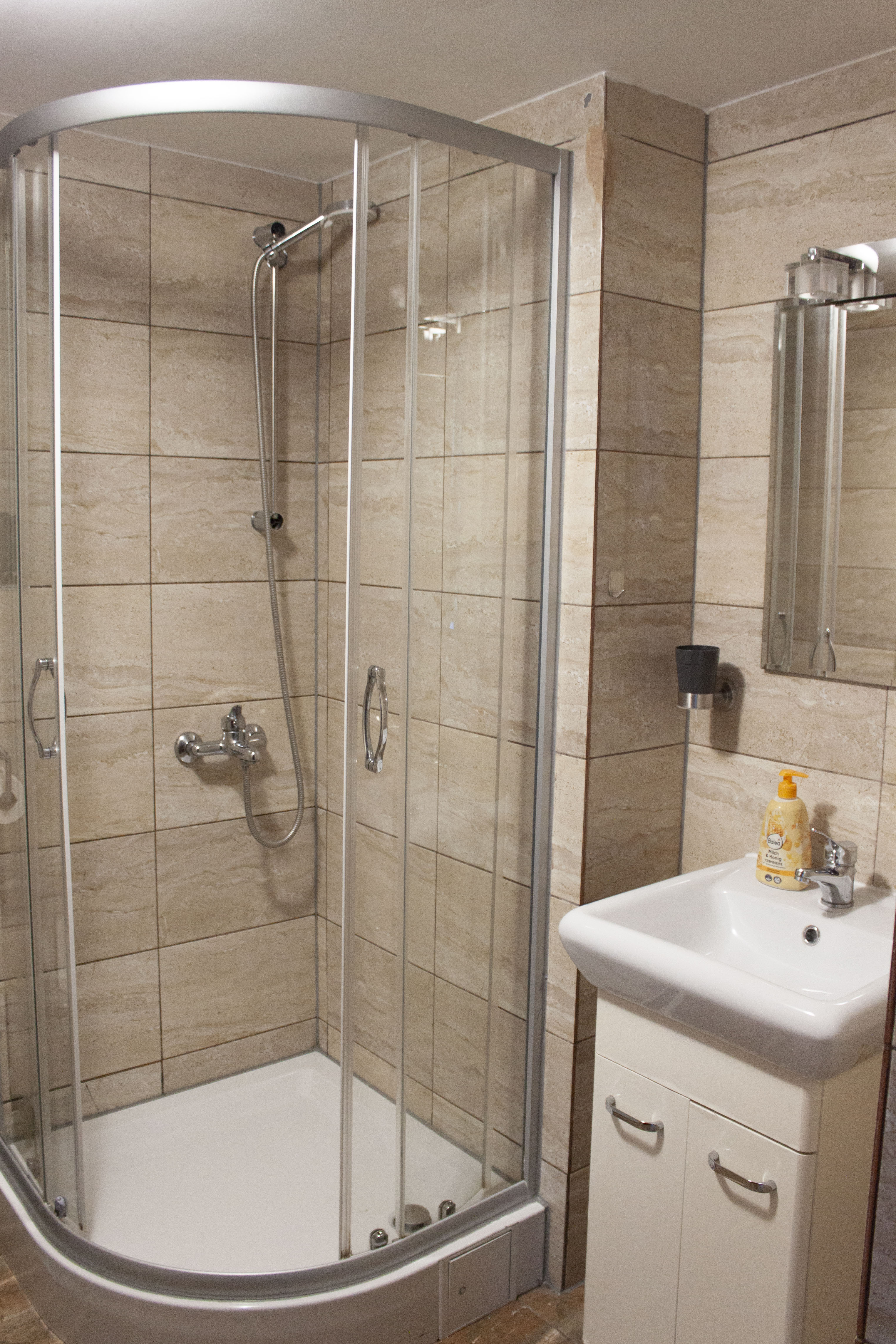 Das Doppelzimmer verfügt über eine Heizung sowie ein eigenes Badezimmer mit Dusche. Das Doppelzimmer bietet einen eigenen Eingang, schallisolierte Wände, einen Kleiderschrank, eine Küche sowie einen Flachbildfernseher mit Satellitenkanälen. Die Unterkunft verfügt über 2 Betten.